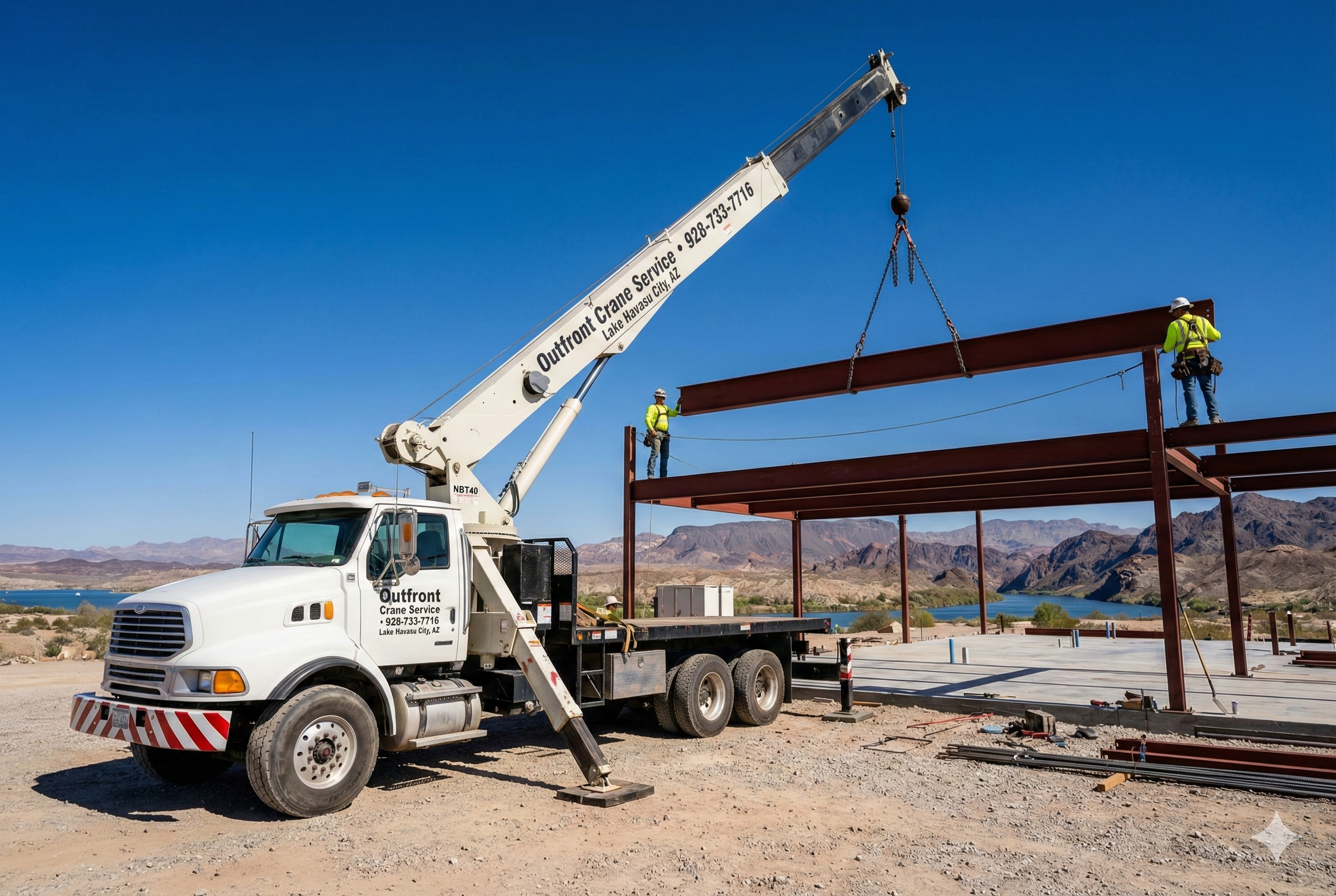 Outfront Crane Service delivers precise, NCCCO-certified lifting for construction and steel erection projects of any size. With DOT-compliant equipment and an experienced owner-operator, we keep your schedule moving with safe, efficient picks across Western Arizona.
